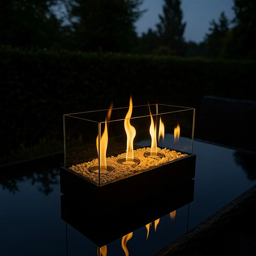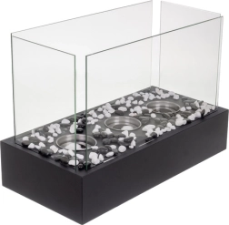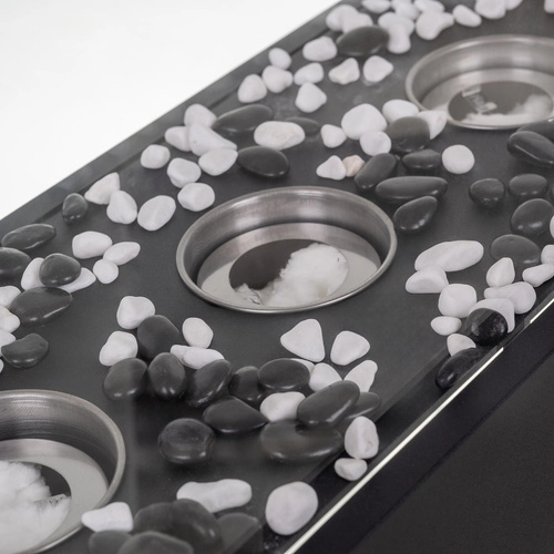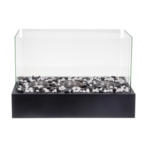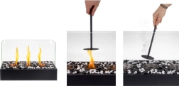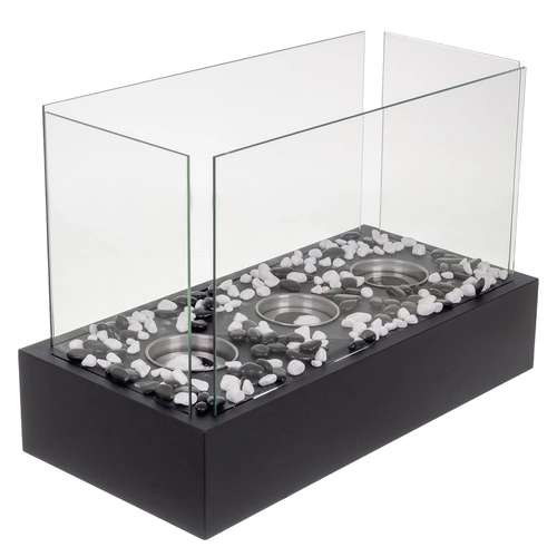 Im Set enthalten sind 3 Edelstahlbrenner mit saugfähiger Keramikfaser für längere Brenndauer, dekorative weiße und schwarze Steine sowie eine Löschhilfe. Einfache Montage und Bedienung machen ihn zur perfekten Wahl für das schnelle Schaffen von Atmosphäre und Wärme an kühlen Abenden.