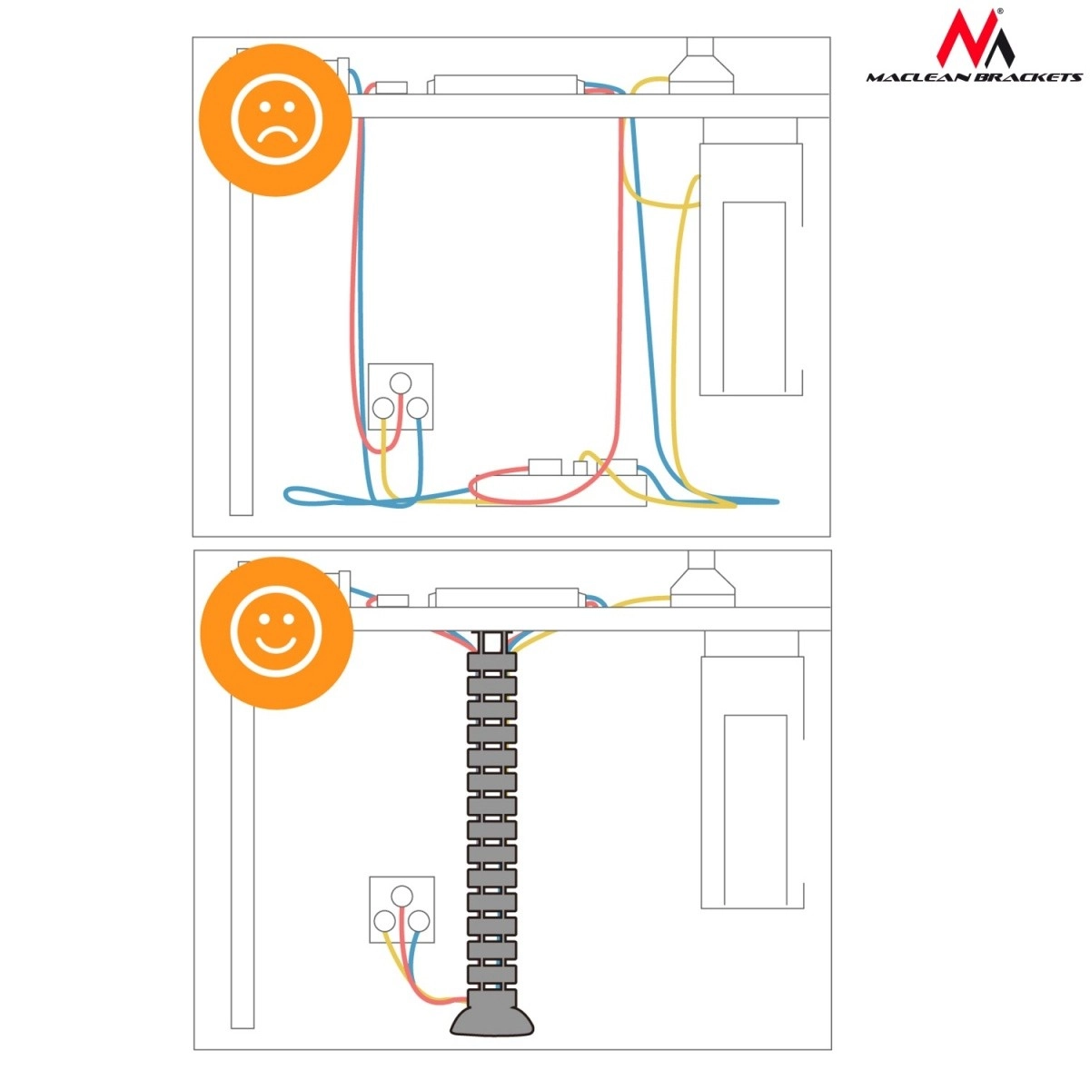 Ordnen Sie Ihre Verkabelung zu Hause und im Büro. Der Kabelorganizer MACLEAN MC-768 S in Silber ist so konzipiert, dass er Verheddern verhindert, Kabel vor Beschädigungen schützt und Ihren Bereich sauber und professionell hält. Perfekt geeignet für Computersets, Audiosysteme und Büroausstattung.