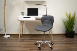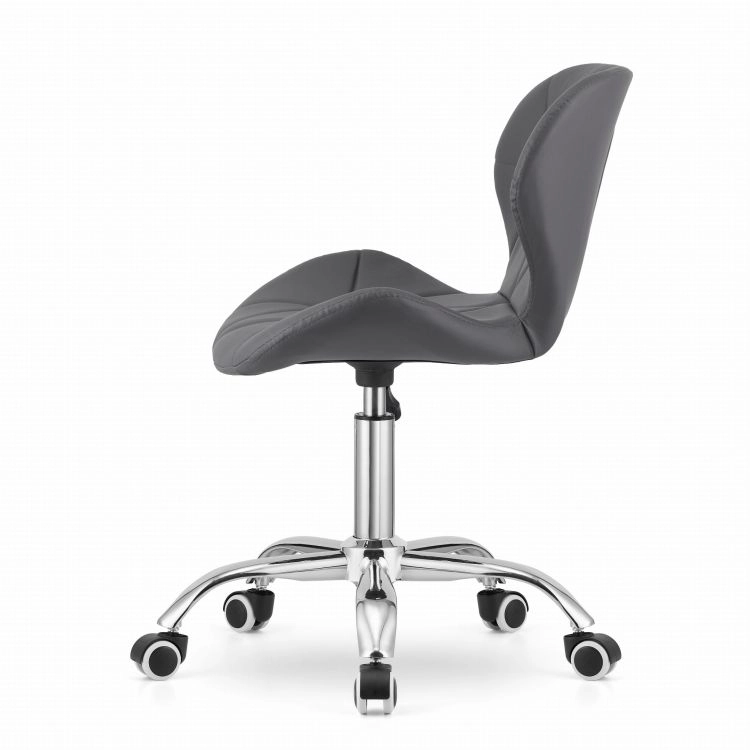 Dank der stufenlosen Höhenverstellung und des drehbaren Sitzes passt er sich leicht Ihrem Arbeitsplatz an. Das chromierte 5-Stern-Fußkreuz mit gummierten Rollen sorgt für Stabilität, leises Rollen und Bodenschonung.