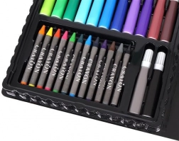 Das Set enthält insgesamt 86 Teile, darunter Buntstifte, Filzstifte, Wachsmal- und Ölpastelle für unbegrenzte Kreativität.