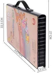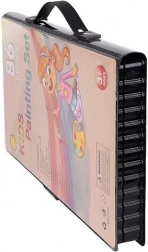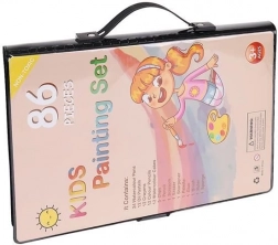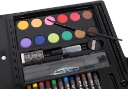 Das Malset enthält 86 Teile, die eine große Auswahl für Zeichnen und Malen bieten – 12 Buntstifte, 24 dicke Filzstifte, 12 Ölpastelle, 12 Wachsmalstifte, 12 Aquarellfarben, Schwamm, Radiergummi, Pinsel, Schere, Bleistift, Anspitzer, Kleber, Lineal, Malpalette und 5 farbige Klammern.