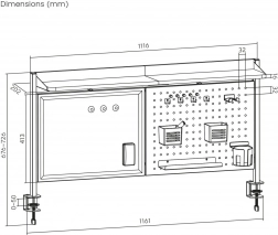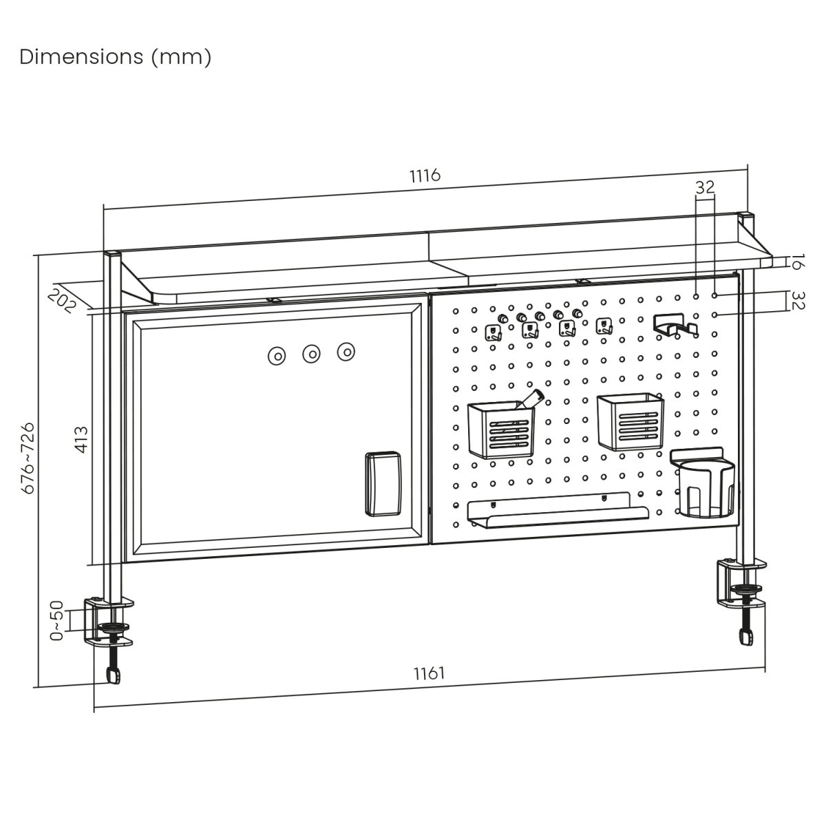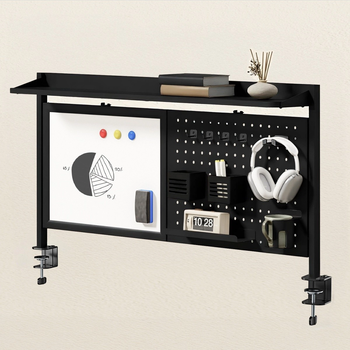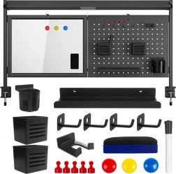 Dieser multifunktionale Aufsatz verwandelt jeden Tisch in eine übersichtliche und effiziente Arbeitszone. Die stabile Befestigung mit Metall-C-Klemmen spart Platz und erfordert kein Bohren. Die magnetische, trocken abwischbare Tafel ist ideal für schnelle Notizen, Aufgaben oder Ideen, die Sie mit dem beiliegenden Schwamm leicht entfernen, und das perforierte Panel ermöglicht das freie Umsetzen von Haltern und Körben nach Ihren Bedürfnissen.