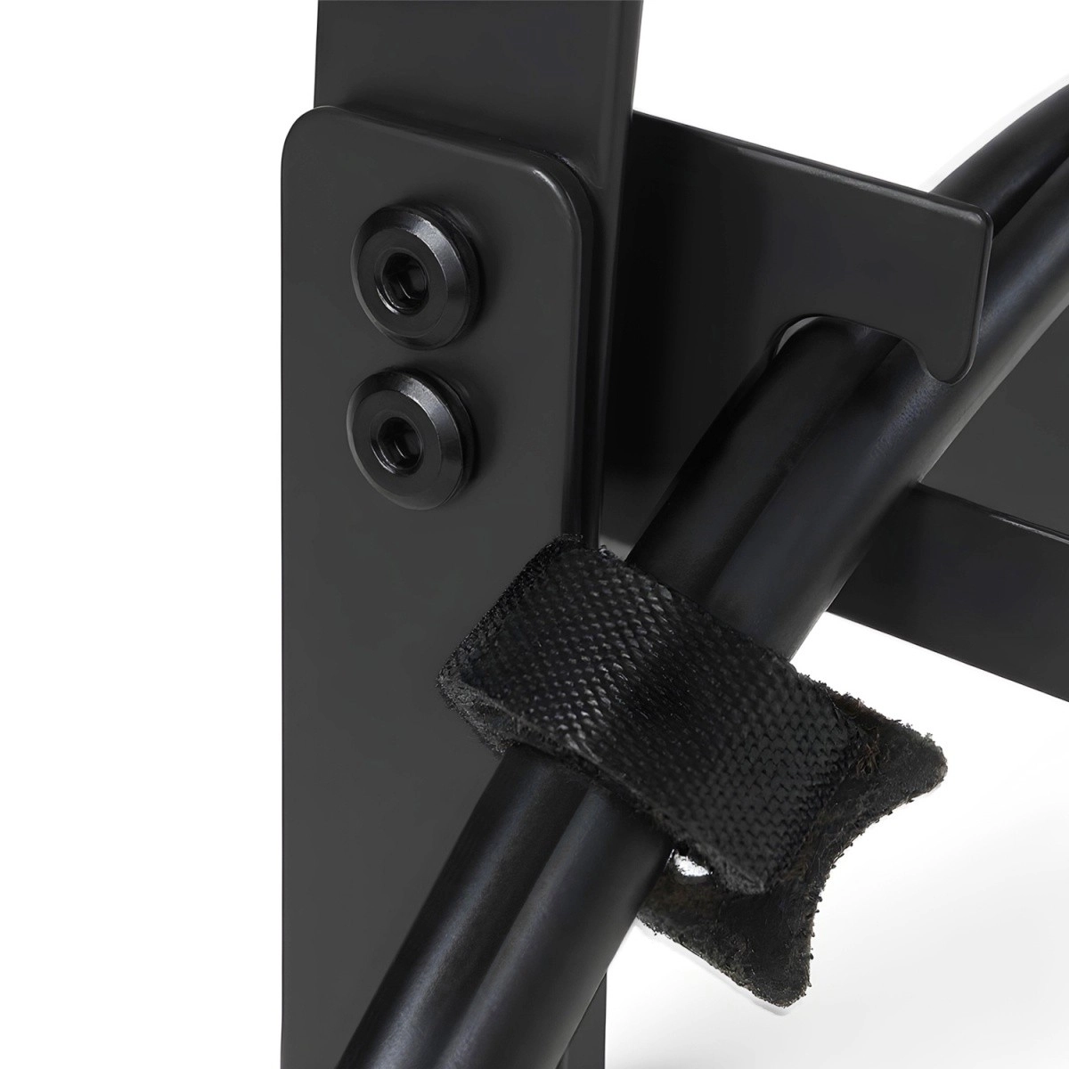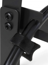 Integrierte Durchführungen und Klettbänder erleichtern das Bündeln und Führen der Kabel zwischen beiden Ebenen ohne Kabelsalat.