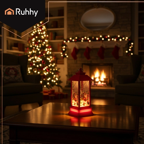 Stilvolle rote Weihnachtslaterne RUHHY mit festlichen Motiven und warmem LED-Licht schafft eine gemütliche Atmosphäre ohne Rauch und Risiko. Sichere Alternative zur Kerze mit einfacher Bedienung und Batterie im Lieferumfang – ideal fürs Wohnzimmer, Esszimmer, Schlafzimmer und die Terrasse.