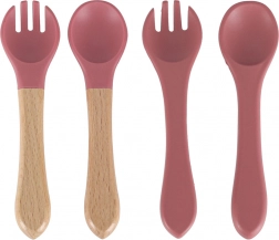 Der Becher mit zwei Deckeln lässt sich als Becher mit Strohhalm oder als Snack-/Lernbecher verwenden. Enthalten sind Trainingsbesteck (teilweise mit Holzelementen), die auf kleine Kinderhände abgestimmt sind, sowie ein Lätzchen mit tiefer Auffangtasche, das Essensreste auffängt. Das Set ist spülmaschinengeeignet und mikrowellentauglich (ausgewählte Teile) – spart Zeit im Alltag.