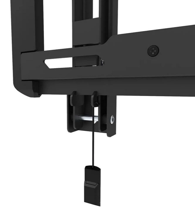Das magnetische Pull-&-Release-System ermöglicht, den TV im Handumdrehen einzuklicken und sicher zu verriegeln. Die Laschen lassen sich anschließend hinter dem Bildschirm verbergen.