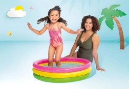 Der aufblasbare Pool von INTEX bringt Kindern Wasserspaß direkt in Ihren Garten. Dank der kompakten Abmessungen 86 × 25 cm passt er fast überall hin, und der niedrige Wasserstand von 17 cm erhöht das Sicherheitsgefühl für die Kleinsten. Das bunte Regenbogendesign ist auffällig und lädt zum Spielen ein.