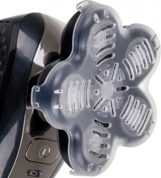 Das Mehrkopf-System passt sich den Konturen von Gesicht und Kopf an, verkürzt die Rasurzeit auf ein Minimum und hinterlässt die Haut glatt, ohne zu ziehen.