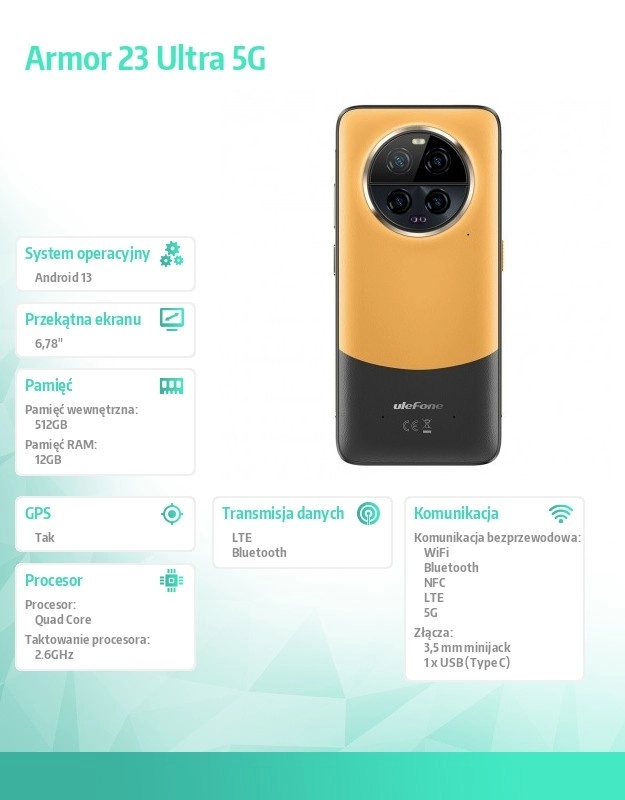 ARMOR 23 ULTRA 5G vereint herausragende Robustheit mit moderner Konnektivität und hoher Speicherkapazität. Die verstärkte Konstruktion mit texturierter Rückseite sorgt für einen sicheren Griff, während das runde Mehrfach-Kameramodul Flexibilität für den Alltag beim Fotografieren und Filmen bietet. Das große Display mit schmalen Rändern gewährleistet komfortables Betrachten von Inhalten, Navigation und Arbeiten auch unter anspruchsvollen Bedingungen.