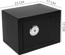 Der Safe hat ausreichend dimensionierte Innenmaße, um Dokumente im A5-Format und andere kleine Gegenstände unterzubringen. Er ist mit robusten Türen und einem kompakten Design ausgestattet, was ein geringes Gewicht und eine einfache Handhabung ermöglicht.