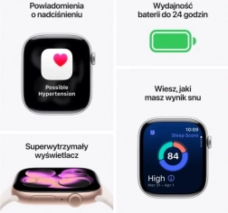Elegante und leistungsstarke Smartwatch APPLE WATCH SERIES 11 mit 46‑mm‑Gehäuse aus Aluminium in Roségold und Sportarmband S/M bietet das dünnste Design, bis zu 24 Stunden Laufzeit, ein robustes Ion‑X Display, präzises GPS und zahlreiche fortschrittliche Gesundheitsfunktionen inklusive EKG, Schlaf‑, Temperaturmessung und Hinweise auf möglich hohen Blutdruck. Die Wasserfestigkeit WR 50M und Staubschutz IP6X sorgen für Zuverlässigkeit beim Sport und im Alltag.