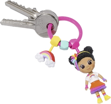 Aus den Puppen machst du im Handumdrehen ein Armband, eine Halskette oder einen Anhänger für Schlüssel und Rucksack. Bunte Schnüre, ein Ring und Verbinder verwandeln das Spiel in ein modisches Accessoire.
