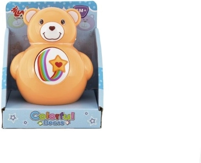 Der Kuschelbär wiegt sich dank seiner abgerundeten Basis natürlich, was die Aufmerksamkeit des Kindes auf sich zieht und seine Interaktivität fördert.