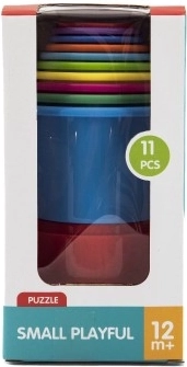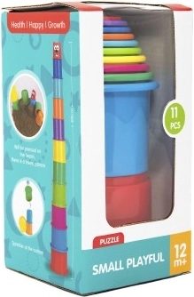 Das Set aus bunten stapelbaren Bechern enthält 11 Teile, die zu einem hohen Turm zusammengestellt werden können. Die Becher sind in verschiedenen Farben gestaltet und können ineinander gesteckt werden, was eine großartige Möglichkeit bietet, die feinmotorischen Fähigkeiten Ihres Kindes zu entwickeln.