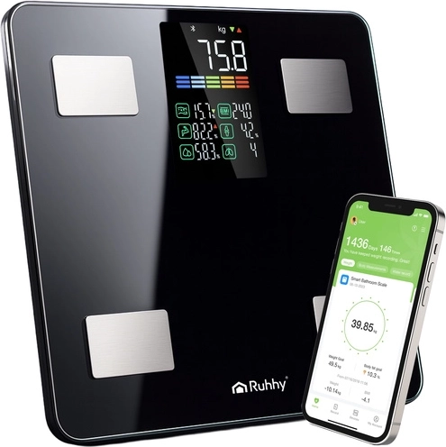 Verfolgen Sie Ihre Ziele smart und bequem. Die analytische Waage RUHHY kombiniert eine präzise Gewichtsmessung mit der bioelektrischen Impedanzanalyse (BIA) und erfasst neben Kilogramm auch wichtige Gesundheitsmetriken. Die mobile App Feelfit speichert Messwerte, zeigt Trends und unterstützt die Auswertung der Fortschritte im Zeitverlauf.