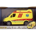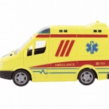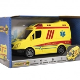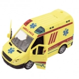 Der Krankenwagen ist mit Licht- und Soundeffekten ausgestattet, die das Spiel noch realitätsnäher machen. Dieses Modell basiert auf einem Schwungradantrieb, der dafür sorgt, dass es sich problemlos auf ebenen Flächen bewegt.