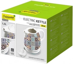 Der Keramik-Wasserkocher MAESTRO PORTO verbindet elegantes Design mit Alltagstauglichkeit. Das Keramikgehäuse mit rotem Blumenmotiv ist robust, leicht zu reinigen und verleiht Ihrer Küche einen einzigartigen Stil. Dank der Leistung von 1200 W erhitzt er Wasser effizient und leise.