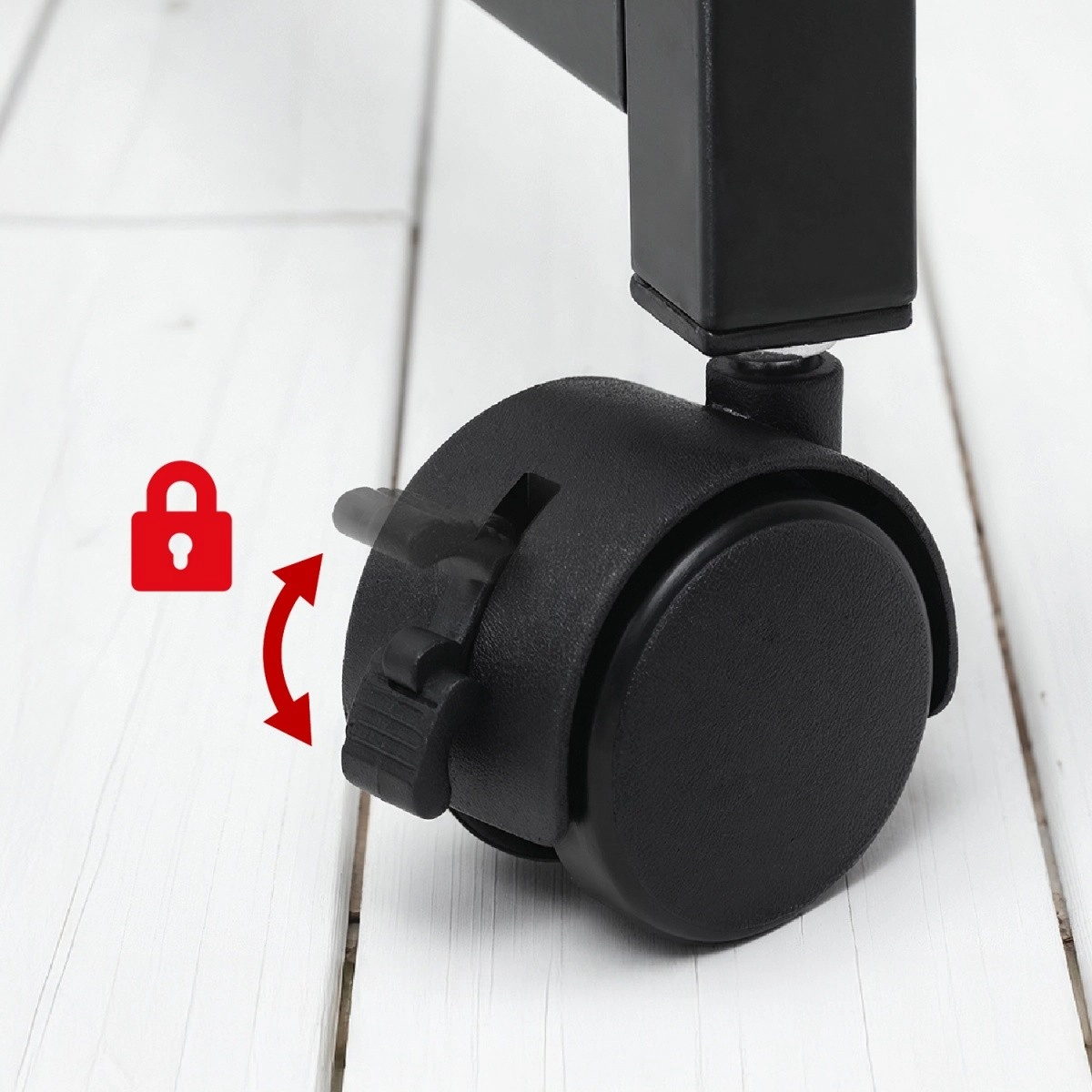 Integrierte Rollen ermöglichen ein sanftes Verschieben des Tisches in der Wohnung oder im Büro. Passen Sie Ihren Arbeitsbereich schnell nach Bedarf an.