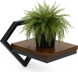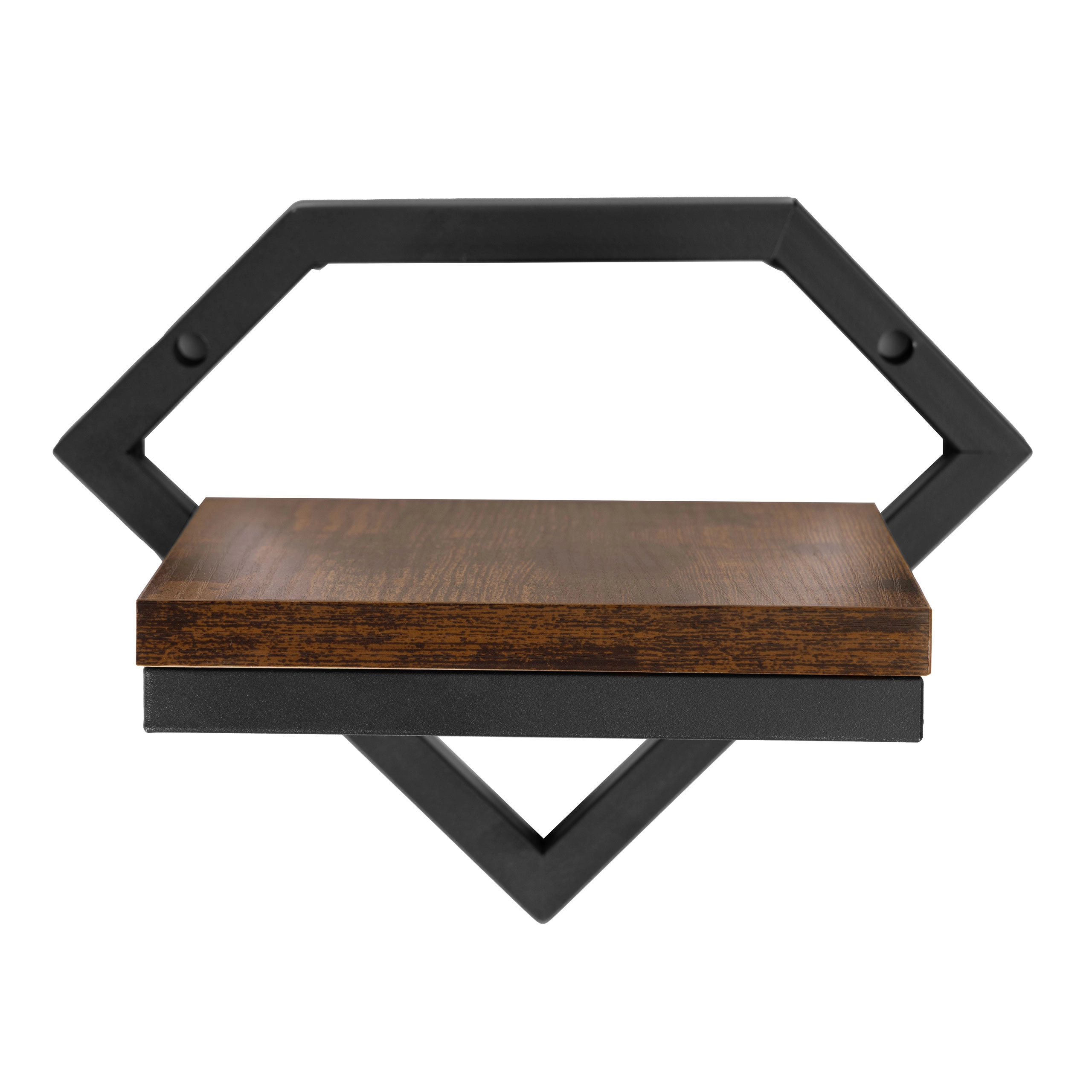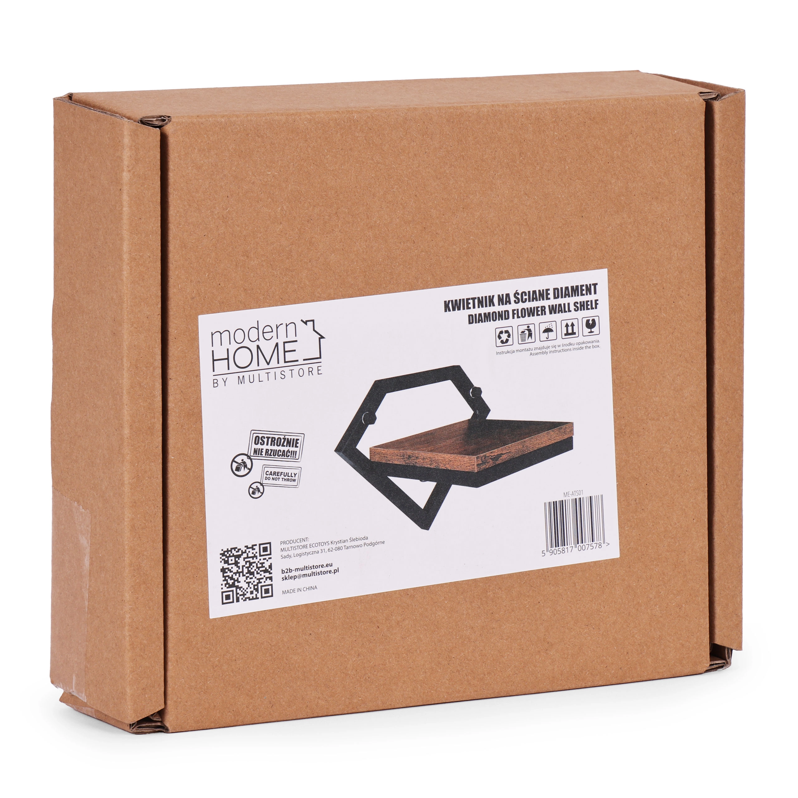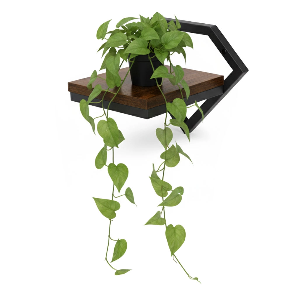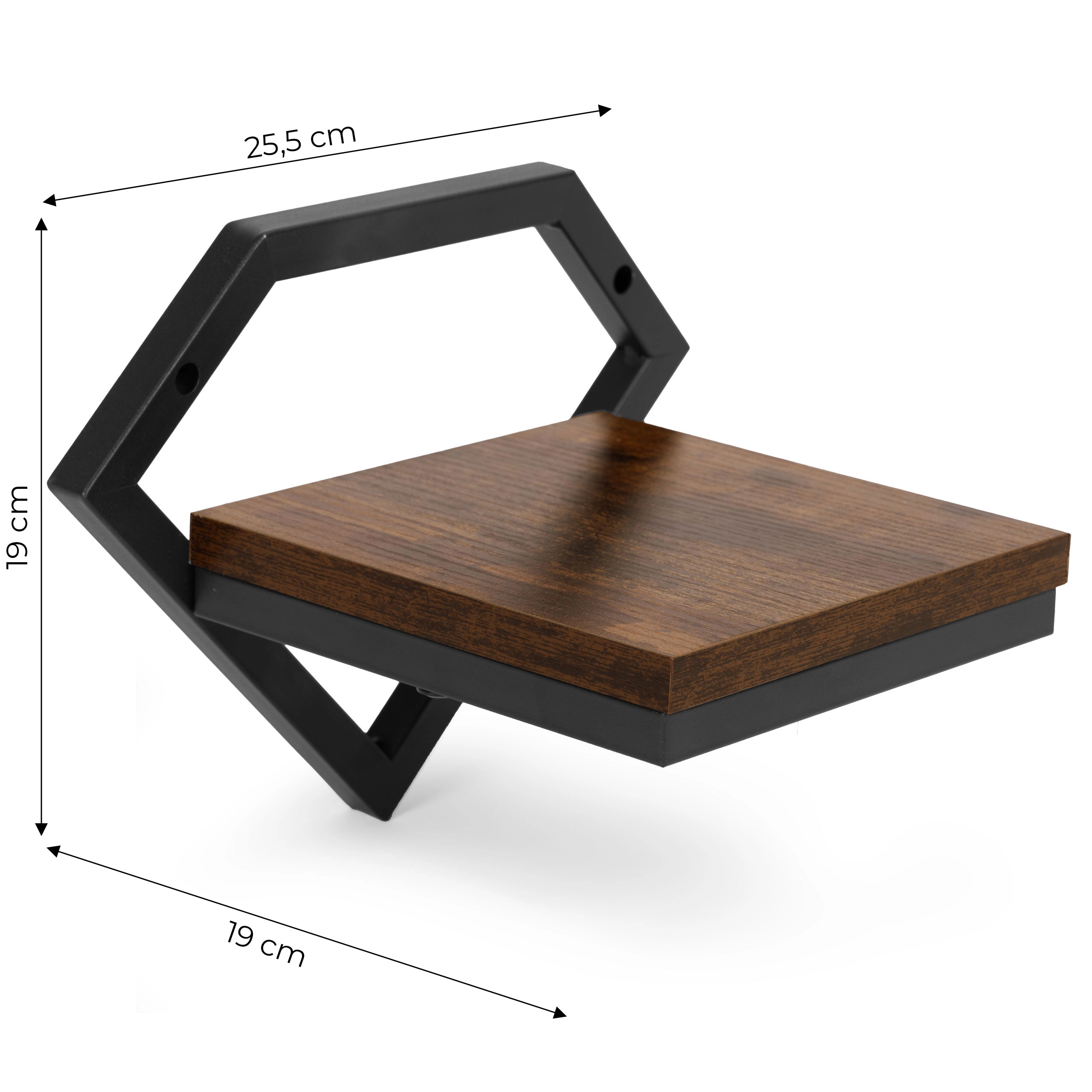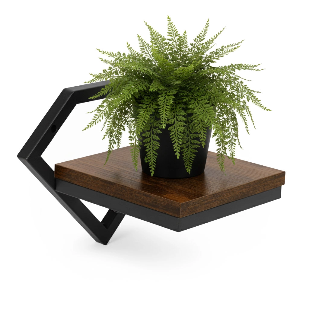 Stilvolles Wandregal mit diamantförmigem Stahlrahmen und Holzplatte – ideal, um Ihre Pflanzen und Deko zu präsentieren. Bietet modernes Industrial-Design, eine stabile, pulverbeschichtete Stahlkonstruktion, einfache Wandmontage mit Schraubenset im Lieferumfang und eine Tragfähigkeit bis 10 kg.