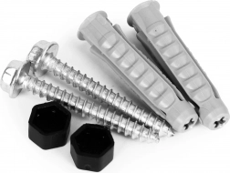 Wandmontage, Montageset im Lieferumfang (Schrauben, Dübel, Abdeckkappen)