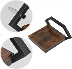 Der Rahmen aus pulverbeschichtetem Stahl ist korrosions- und verschleißbeständig, die Spanplattenablage im Holzdekor sorgt für Wärme und Kontrast. Im Lieferumfang ist ein komplettes Montageset enthalten (Dübel, Schrauben und Abdeckkappen), sodass Sie alles Nötige sofort zur Hand haben.