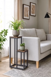Präsentieren Sie Ihre Lieblingspflanzen, Kräuter oder Dekorationen stilvoll und übersichtlich. Der Pflanzenständer im Loft-Design verbindet modernes Aussehen mit robuster Verarbeitung und passt in jedes Interieur – vom Wohnzimmer über die Küche bis zum Arbeitszimmer. Zwei unterschiedlich hohe Ablagen ermöglichen ein effektvolles Arrangement hängender und aufrechter Pflanzen.