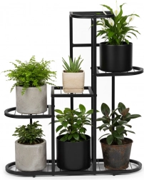 Präsentieren Sie Ihre Lieblingspflanzen stilvoll und ordentlich. Dieser fünfstufige Ständer im minimalistischen Design ermöglicht ein elegantes Arrangement von Grünpflanzen sowie einfachen Zugang zum Gießen und zur Pflege. Das universelle Design fügt sich perfekt in moderne Interieurs, Küchen mit Kräutern und repräsentative Empfangsbereiche ein.