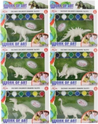 • Komplettes Paket – Dinosaurier, Ei, 6 Farbtöpfchen und Pinsel.