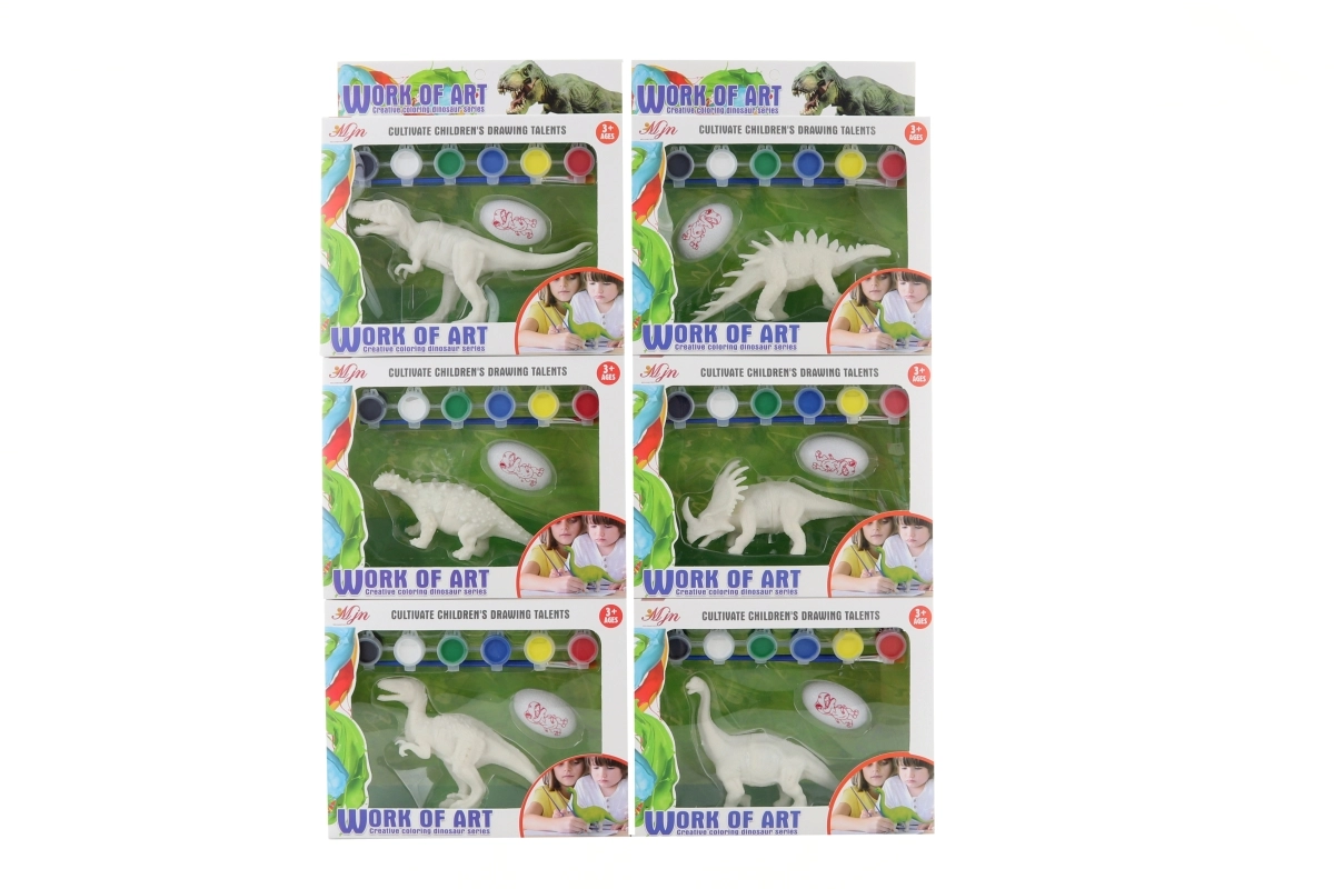 Kunststoff-Dinosaurier, Ei, 6 Farben, Pinsel