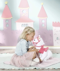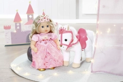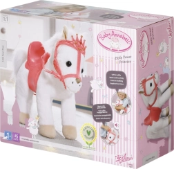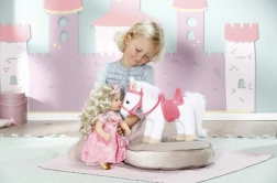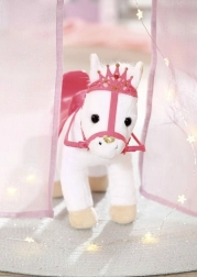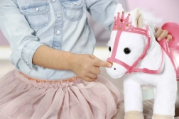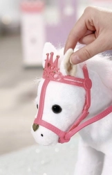 Der Little Sweet Pony von BABY ANNABELL ist ein kuschelweicher Freund, der jedes Spiel in ein Prinzessinnen-Abenteuer verwandelt. Dank des bequemen Sattels und des eleganten Zaumzeugs mit Krone genießt die Puppe eine sichere Ausfahrt und Kinder viele zarte Geschichten.