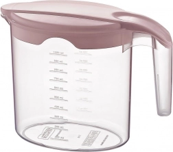 Praktischer Kunststoffkrug mit einem Volumen von 1 Liter, ideal für das tägliche Servieren von Getränken zu Hause und im Garten. Er ist leicht, robust und hat einen bequemen Griff für einfaches Tragen. Dank der Ausgießtülle lässt sich das Getränk gut einschenken, die integrierte Messskala erleichtert genaues Abmessen und der verschließbare Deckel schützt den Inhalt vor Schmutz und Insekten. Perfekt für Wasser, Limonade, Säfte sowie Kompotte.