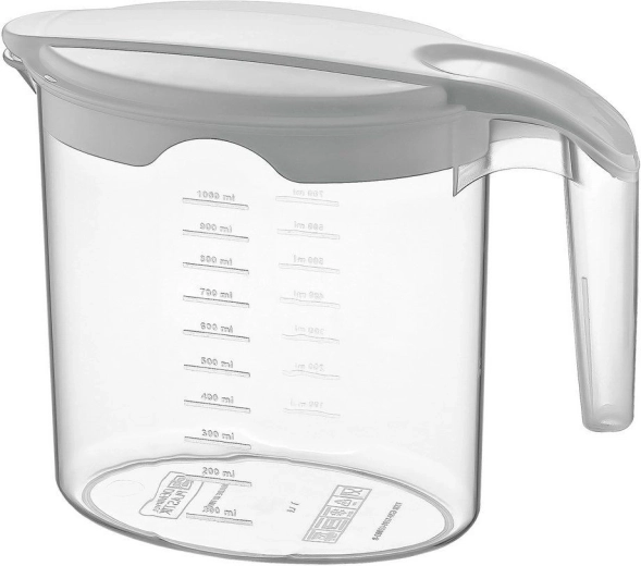 Der leichte und robuste Kunststoffkrug 1 l ist für eine komfortable Nutzung in der Küche und im Freien konzipiert. Die praktische Ausgießtülle sorgt für sauberes Einschenken ohne Tropfen, während der verschließbare Deckel Getränke vor Staub und Insekten schützt. Dank der Messskala eignet er sich auch zum präzisen Abmessen von Flüssigkeiten.