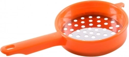 Der lange Griff sorgt für einen komfortablen Halt, der kleinere Auflagebügel ermöglicht ein sicheres Auflegen auf Schüssel oder Topf. Die praktische Öse am Griffende dient zum Aufhängen an der Küchenleiste. Das Produkt wird in zufälliger Farbvariante geliefert (weiß, gelb, orange). Zudem ist es leicht zu reinigen – spülmaschinengeeignet.