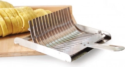 Praktischer Edelstahl-Schneider für Knödel und Nocken, mit dem Sie schnell und präzise bis zu 15 gleichmäßige Scheiben mit einer Dicke von ca. 1,4 cm schneiden können. Hergestellt aus hochwertigem Edelstahl, leicht zu reinigen und spülmaschinengeeignet.