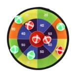 Das Spiel enthält 8 Klettbälle, die sicher an der Scheibe haften und so den Aufsichtsbedarf in Bezug auf Sicherheit minimieren. Die Scheibe ist mit einer Öse zum einfachen Aufhängen im Raum ausgestattet.
