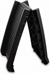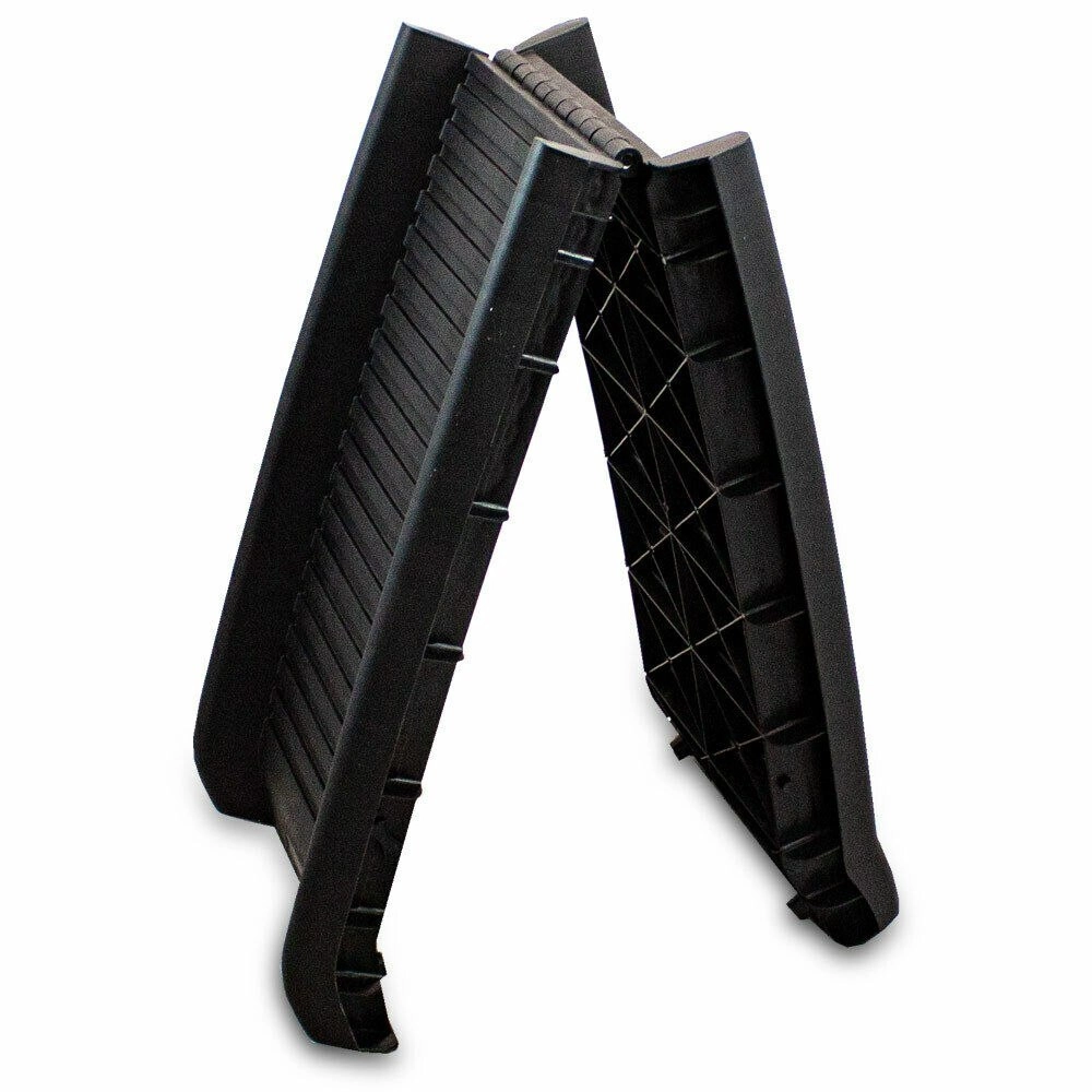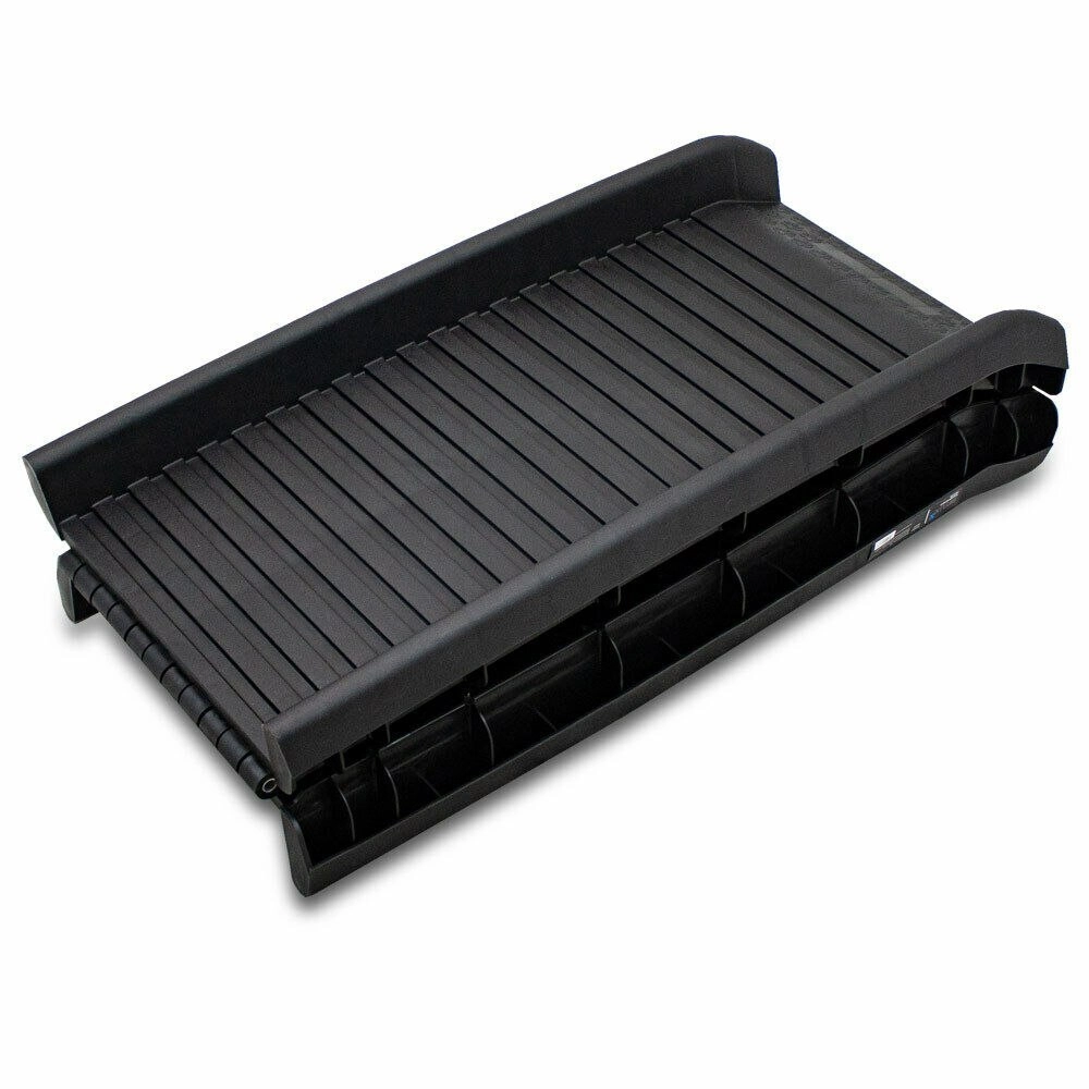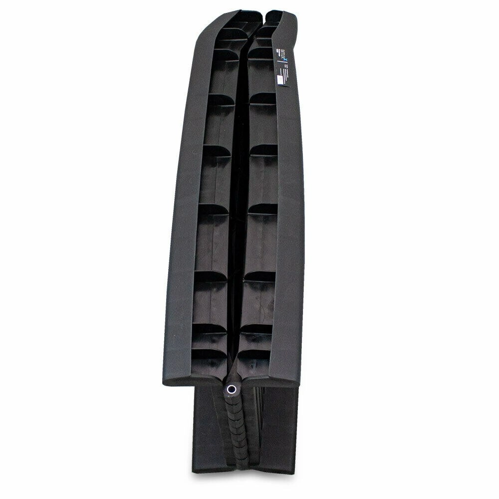 Die Rampe wiegt nur 5 kg, lässt sich leicht tragen und dank Mittelscharnier schnell auf ein kompaktes Maß zusammenklappen.