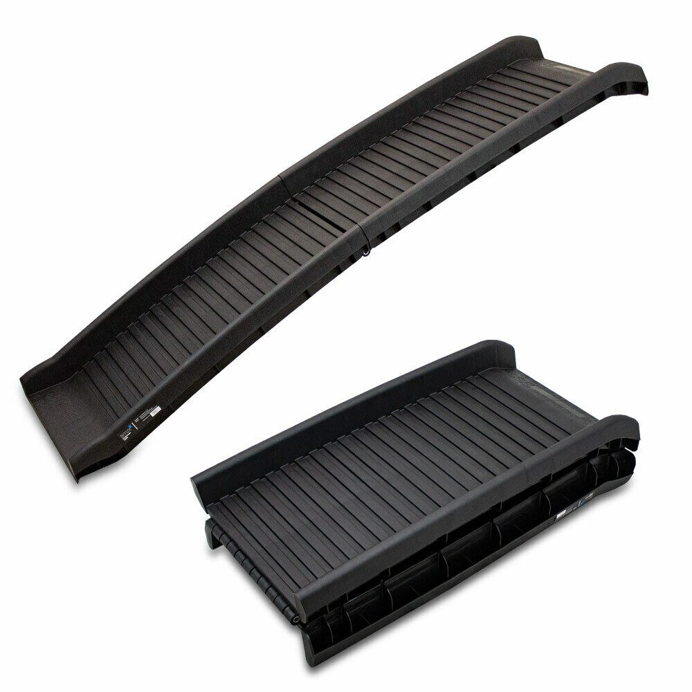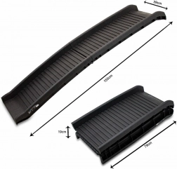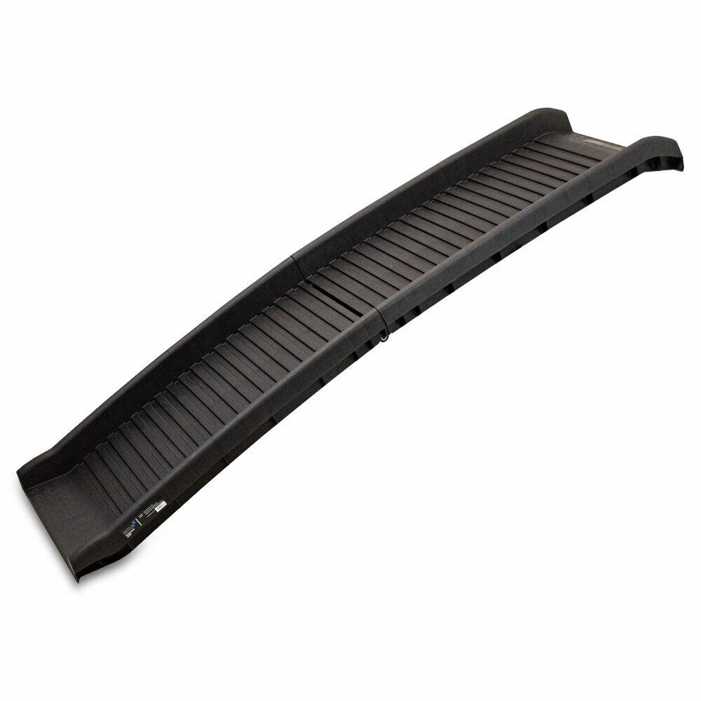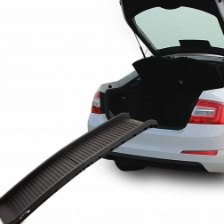 Dank des Gewichts von nur 5 kg und der klappbaren Konstruktion lässt sich die Rampe leicht transportieren und im Kofferraum verstauen. Gummischutz bewahrt zudem den Lack der Stoßstange, wenn die Rampe am Fahrzeug anliegt. Die Pflege ist unkompliziert – die Oberfläche lässt sich einfach abwischen.
