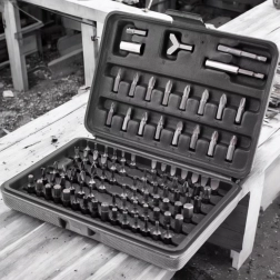 Jeder Bit hat seinen festen Platz im robusten Kunststoffkoffer. So finden Sie schnell die richtige Größe und transportieren alles sicher.