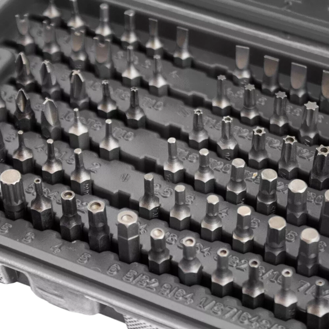 100-teiliger Bitsatz mit Etui – TORX, Inbus, Tri‑Wing, Spanner