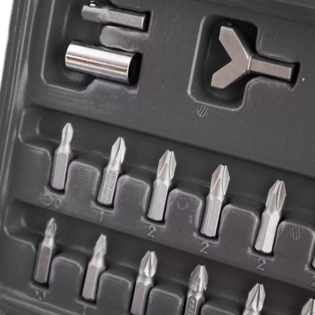 Bits aus hochwertigem Stahl widerstehen Verschleiß und sorgen für sicheren Grip, damit Schrauben nicht durchdrehen und die Arbeit reibungslos läuft.