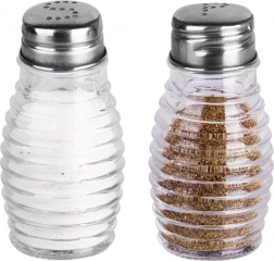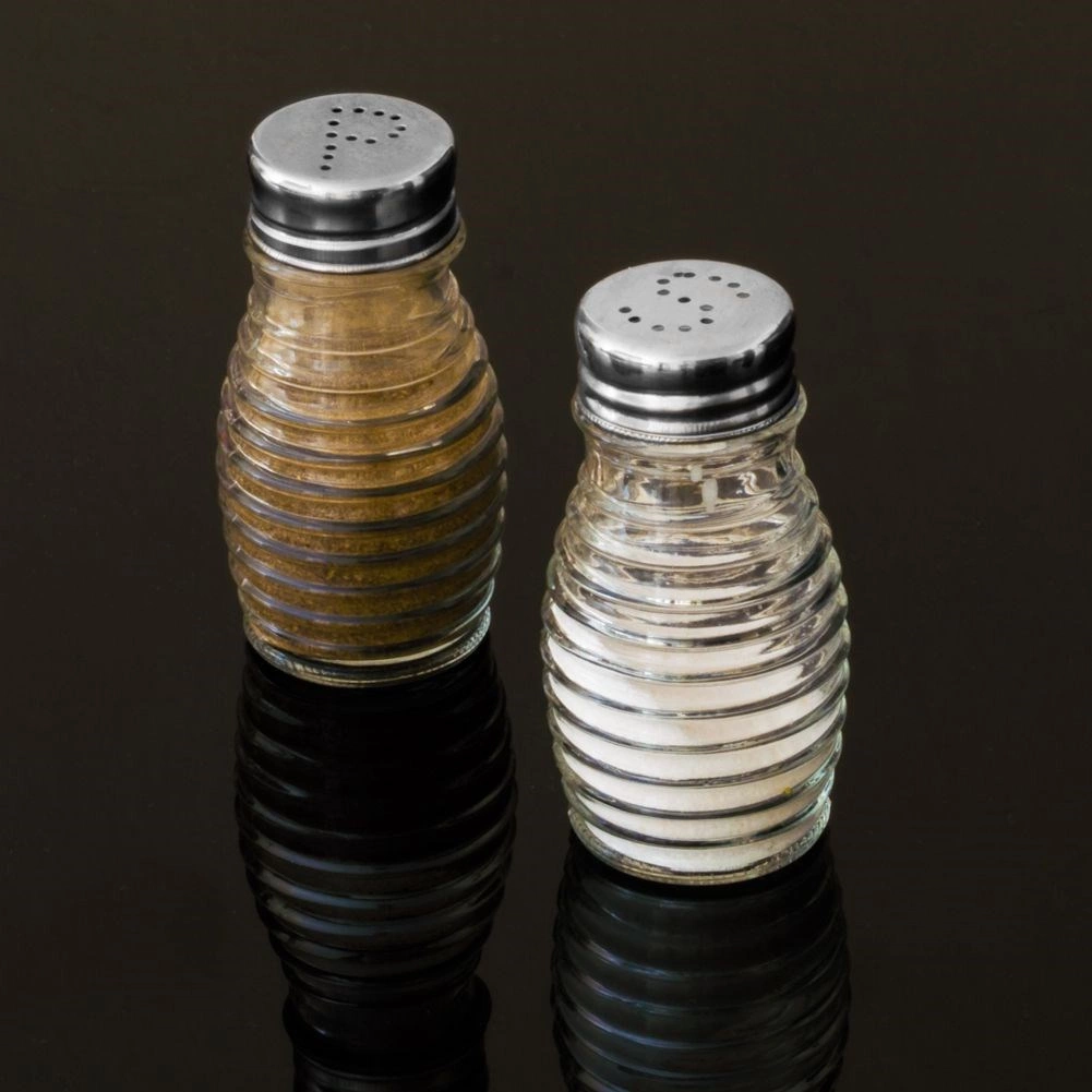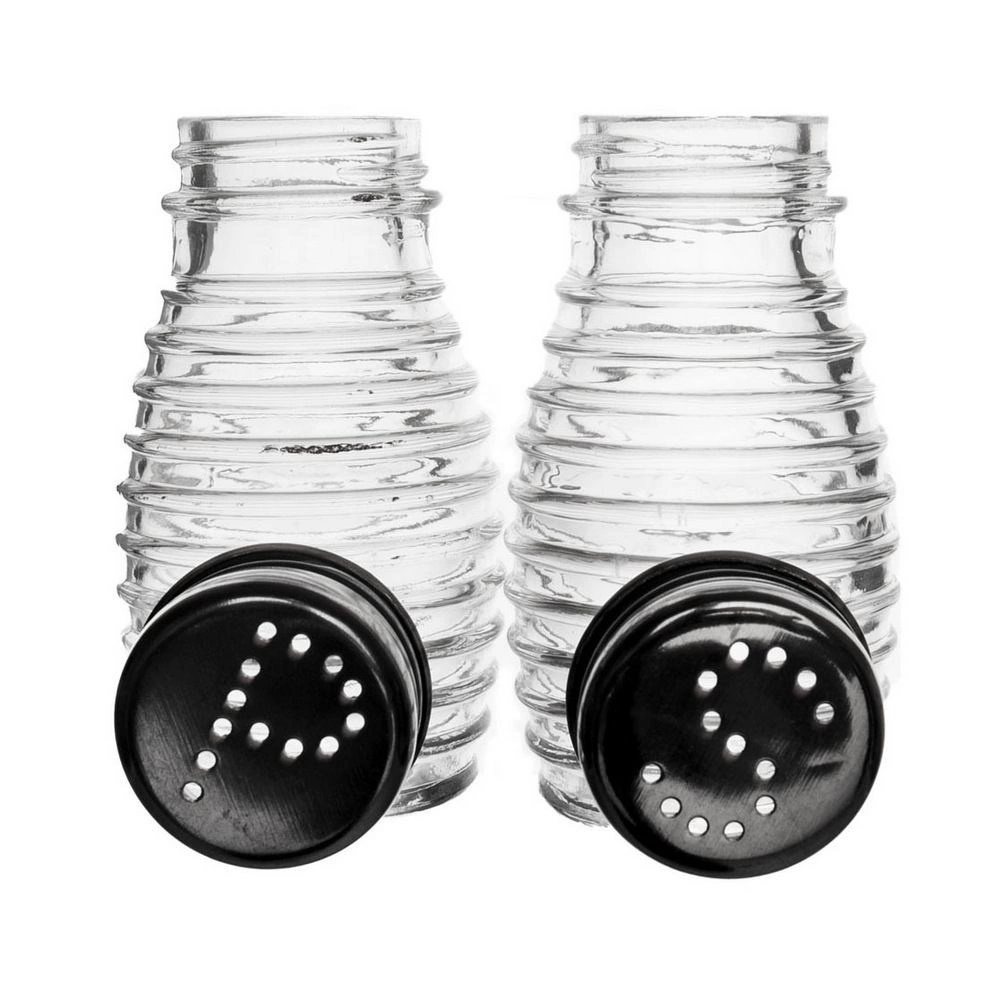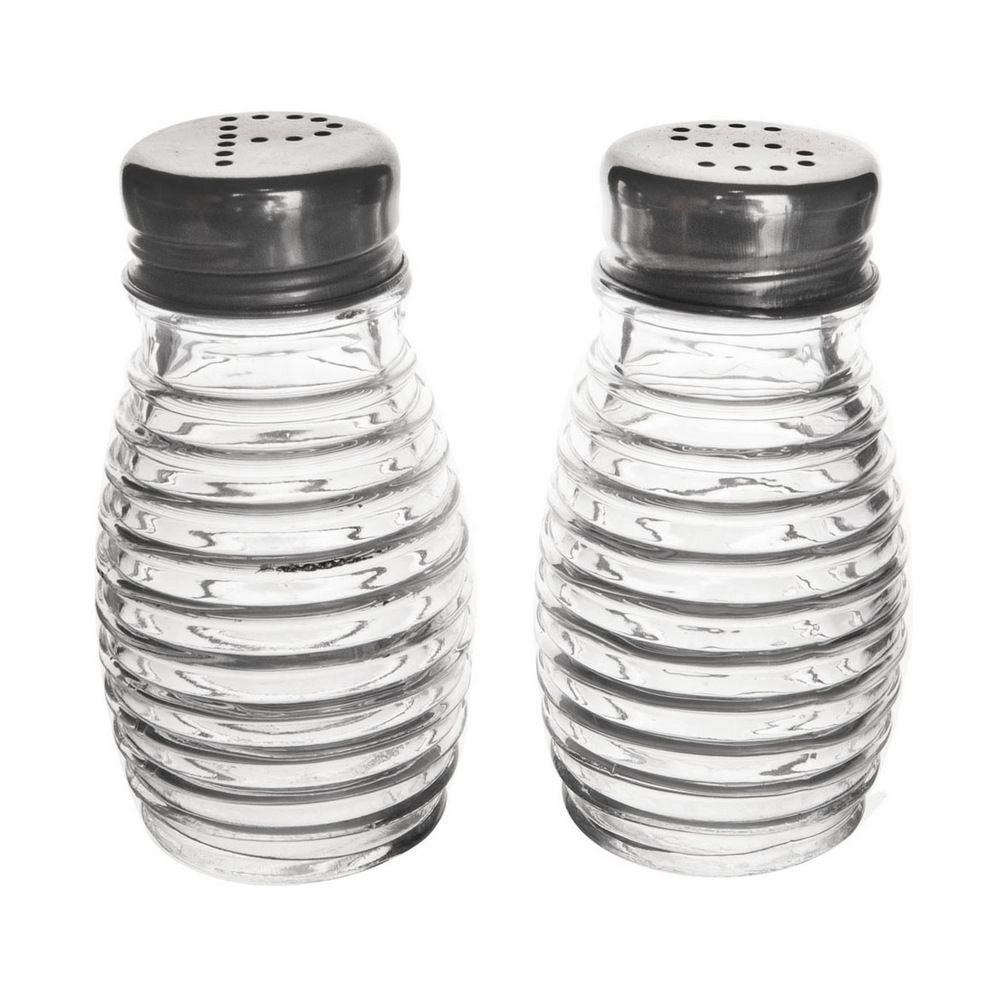 Das praktische und stilvolle Set aus Salz- und Pfefferstreuer besteht aus hochwertigem klarem Glas und ist mit robusten Metalldeckeln in Silberfarbe ergänzt. Die geriffelten Seiten verleihen Eleganz und sorgen zugleich für einen besseren Halt bei der Verwendung. Die transparente Ausführung ermöglicht es, Menge und Art der Gewürze auf einen Blick zu erkennen.