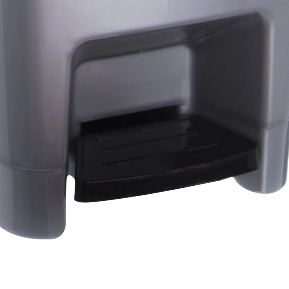 Kompakter Mülleimer mit 10 l Volumen und Pedalöffnung für hygienische berührungslose Nutzung. Die schmale Ausführung spart Platz, robuster Kunststoff in Grau mit schwarzem Deckel hält Gerüche zuverlässig zurück. Innen sorgen klappbare Beutelhalter für eine saubere und stabile Befestigung.