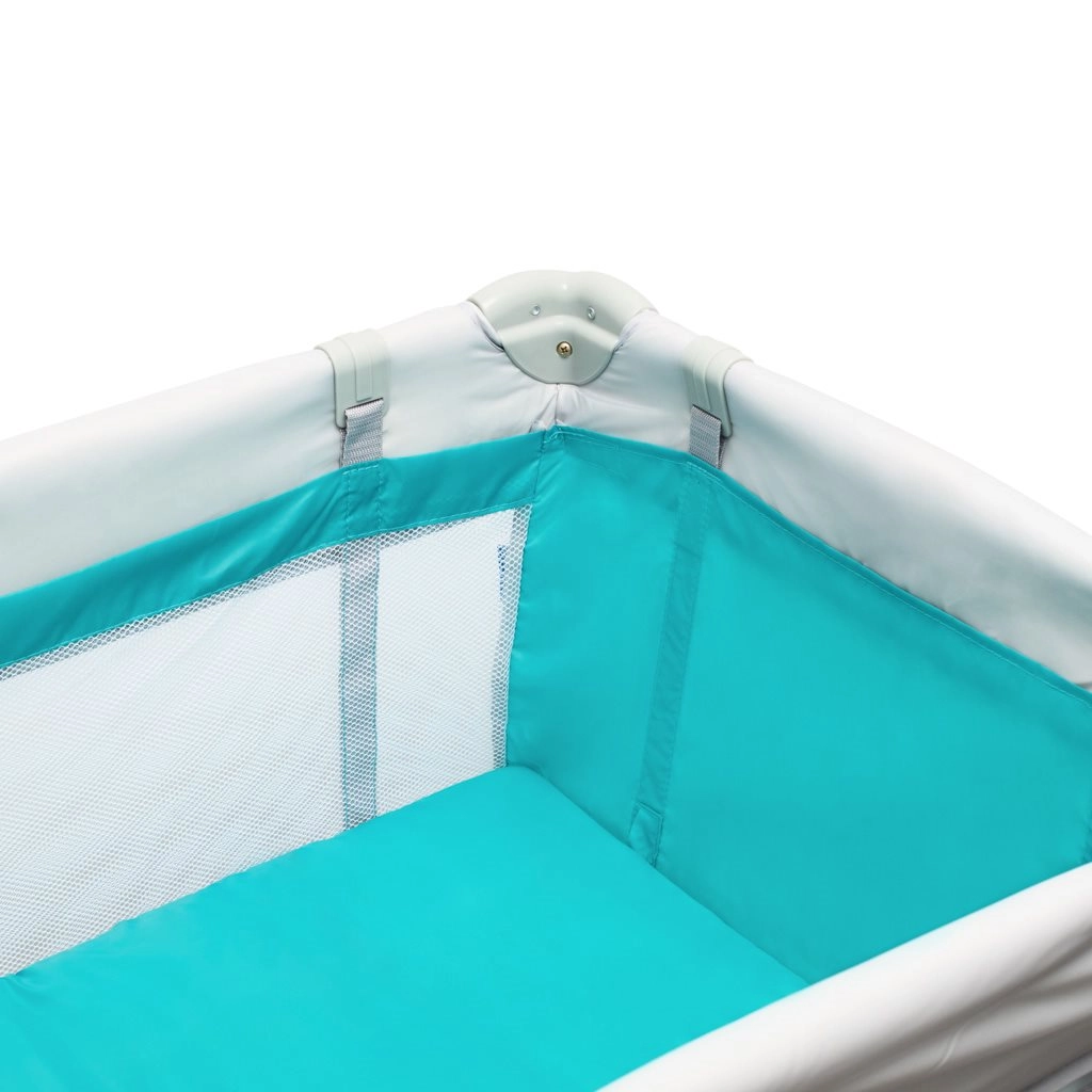 Für einfaches Handling ist es mit Rollen mit integrierter Bremse, einem Reißverschluss-Eingang zum Spielen und leichten Zugang sowie einer weichen, faltbaren Matratze in der Größe 120 × 60 cm ausgestattet. Das moderne Design mit fröhlichen Motiven erfreut Kinder und Eltern. Das Produkt erfüllt die strengen europäischen Sicherheitsnormen EN 716.