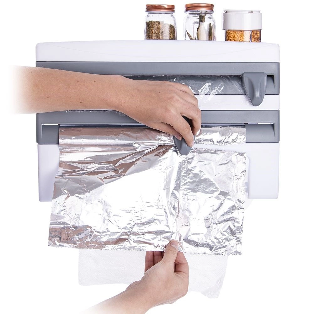 • 3-in-1: Frischhaltefolie, Aluminiumfolie, Papierhandtücher