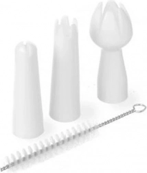 Das Set enthält 3 verschiedene Aufsätze für effektvolle Verzierungen auf Desserts, Kuchen und Getränken. Leicht austauschbar und abwaschbar.