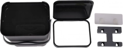 Ein stabiler Griff erleichtert das Herausnehmen und Tragen; im Lieferumfang sind Halterung und weiteres Zubehör für die schnelle Befestigung an der Tür oder Wand enthalten.