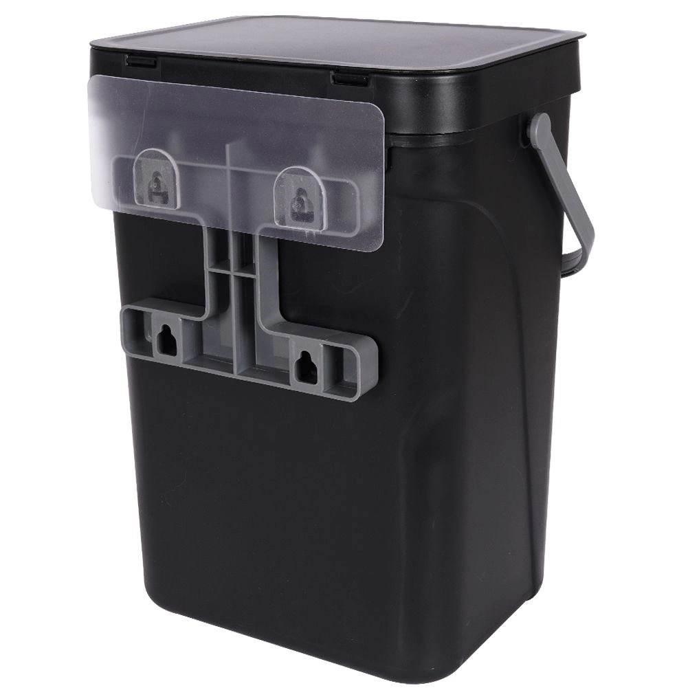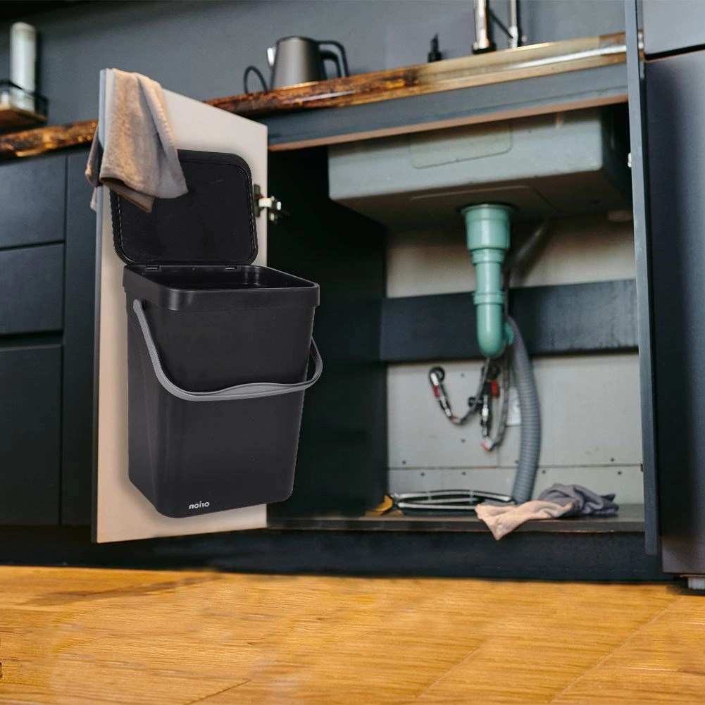 Der Eimer lässt sich einfach an die Schranktür hängen oder an der Wand befestigen. Die kompakte Form passt perfekt unter die Spüle und schafft freien Platz auf dem Boden.