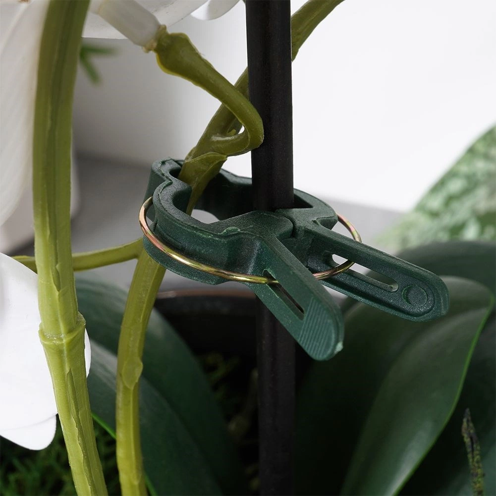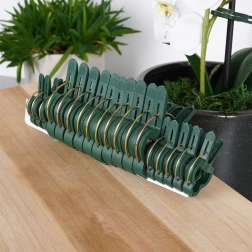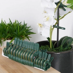 Der Federmechanismus mit geriffelten Backen hält sicher, ohne die Pflanze zu beschädigen. Ideal zum Fixieren an Stäben und Rankhilfen.