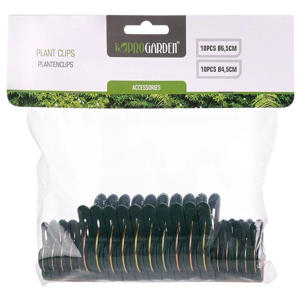 Das PROGARDEN-Set aus Gartenclips in zwei Größen (10× 4,5 cm und 10× 6,5 cm) erleichtert das Anbinden und Formen von Pflanzen drinnen und draußen. Der Federmechanismus mit sicherem Griff hält Stängel an Stäben oder Gittern, ohne sie zu quetschen.
