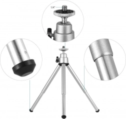 Dieses kompakte Stativ ist aus hochwertigem Aluminium gefertigt, was hohe Widerstandsfähigkeit und stabile Konstruktion garantiert. Es ist perfekt für Makrofotografie dank der Möglichkeit der Anpassung in jeder Position mithilfe eines beweglichen Kopfs, der sich in drei Richtungen bewegt. Das universelle 1/4'' Gewinde ist mit den meisten Kameras kompatibel.